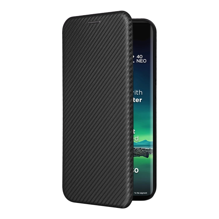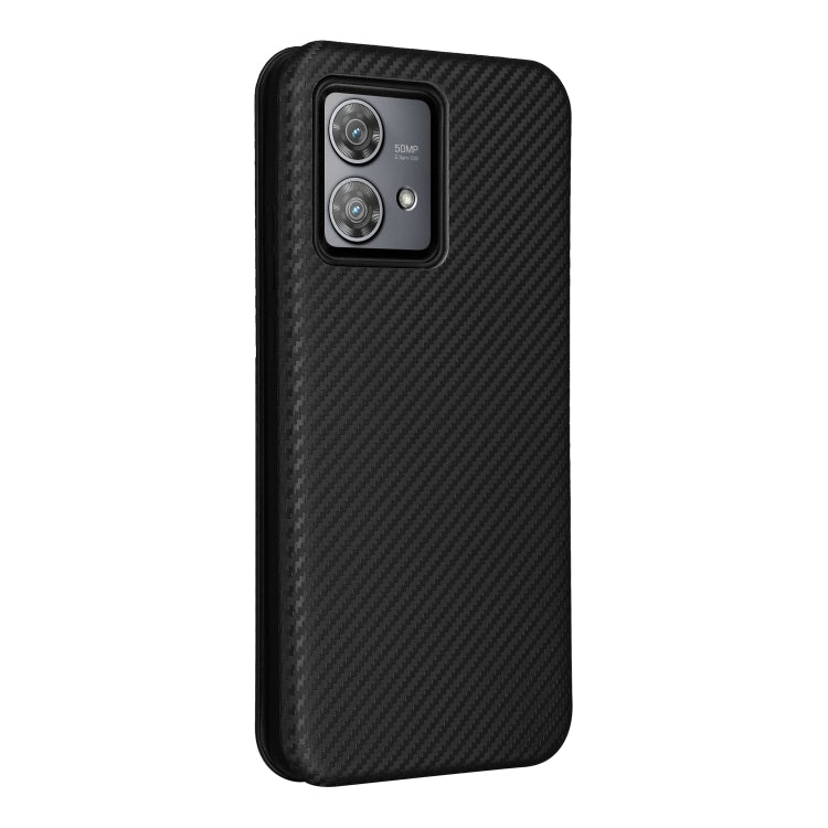 Funda de Cuero para Motorola Edge 40 Neo con Tapa y Textura de Fibra de Carbono (Negro)