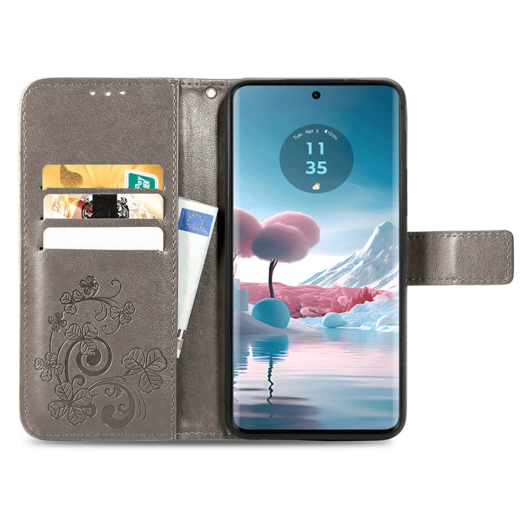 Funda para Motorola Edge 40 Neo de Cuero Repujado con Cierre de Cuatro Hojas (Gris)