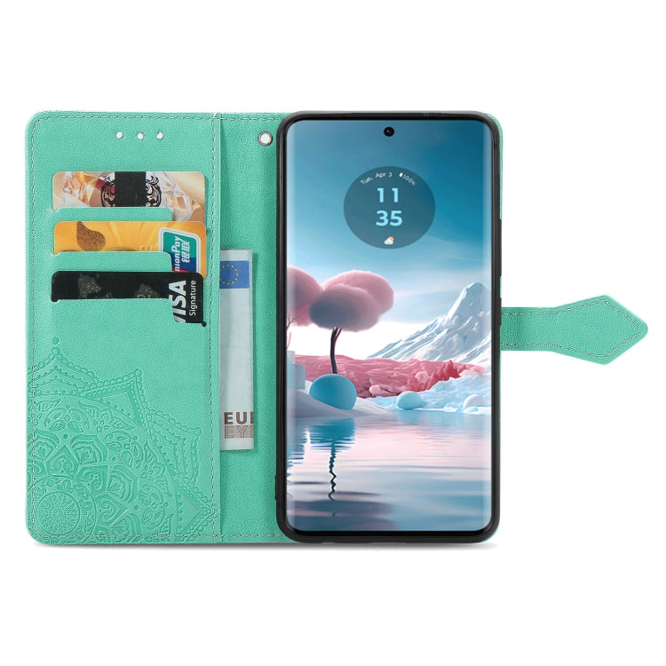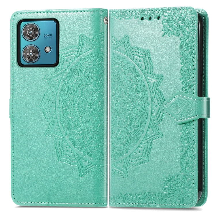 Funda de Cuero para Motorola Edge 40 Neo Mandala Flower en Relieve (Verde)