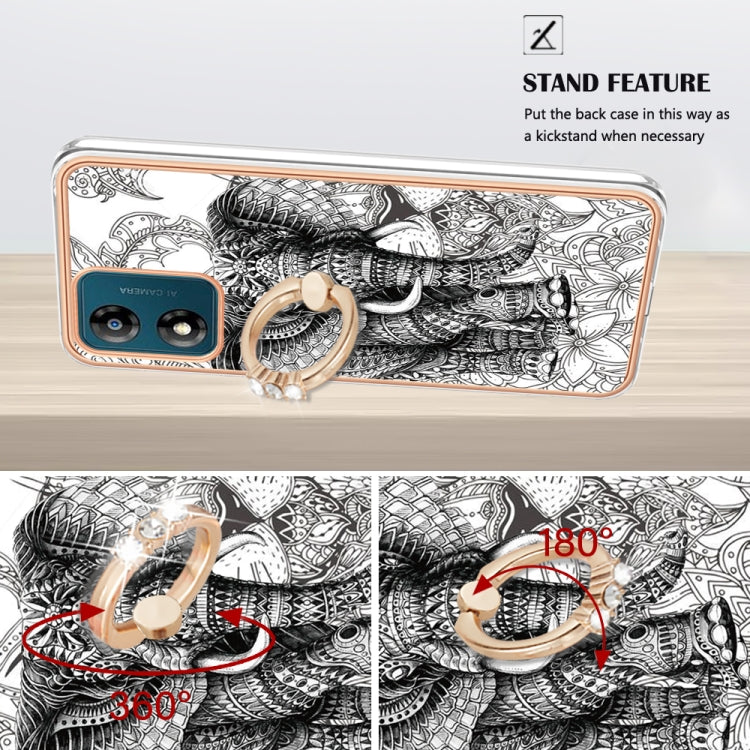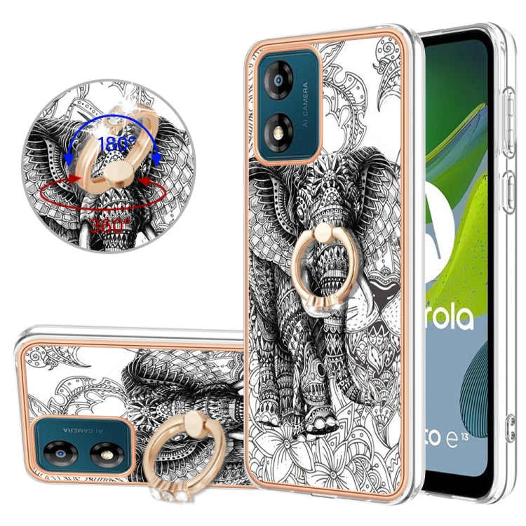Funda para Motorola Moto E13 Galvanoplastia Doble Cara con Soporte para Anillo (Totem Elephant)