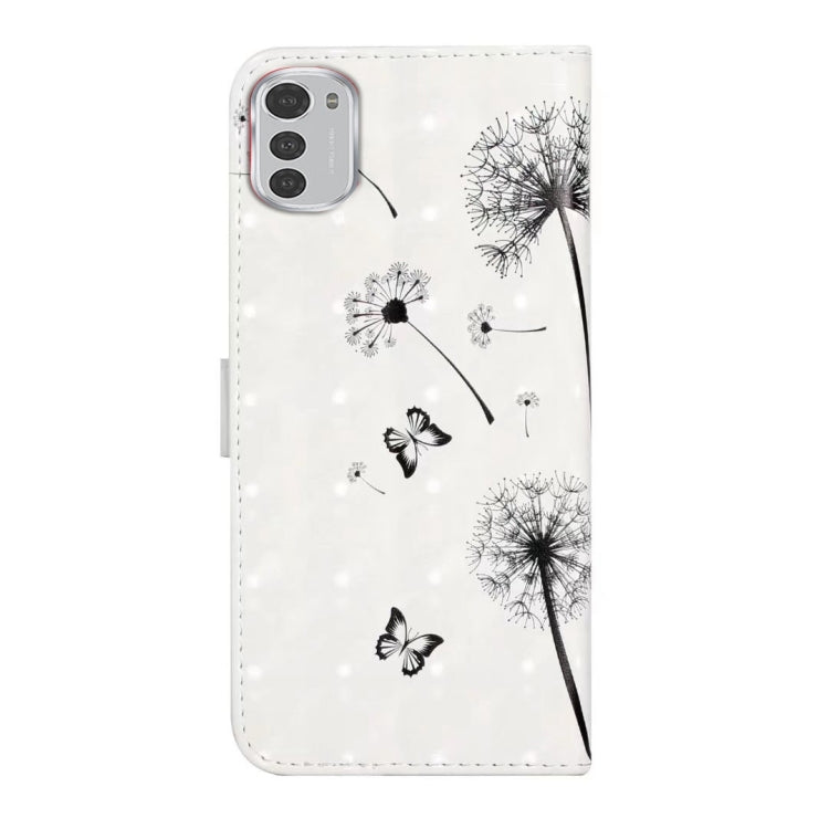 Funda de Cuero para Motorola Moto E32 con Dibujo 3D en Relieve al Óleo (Pareja de Diente de León)