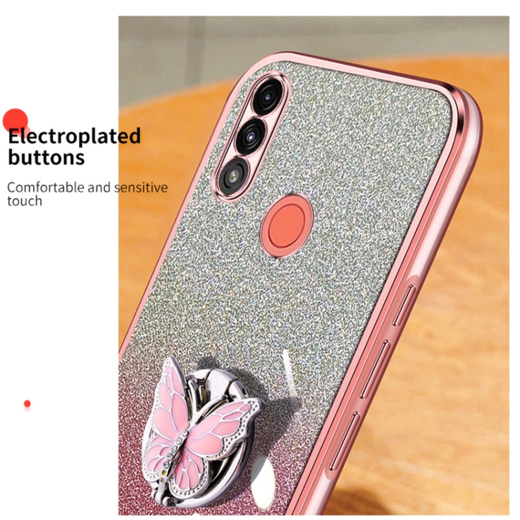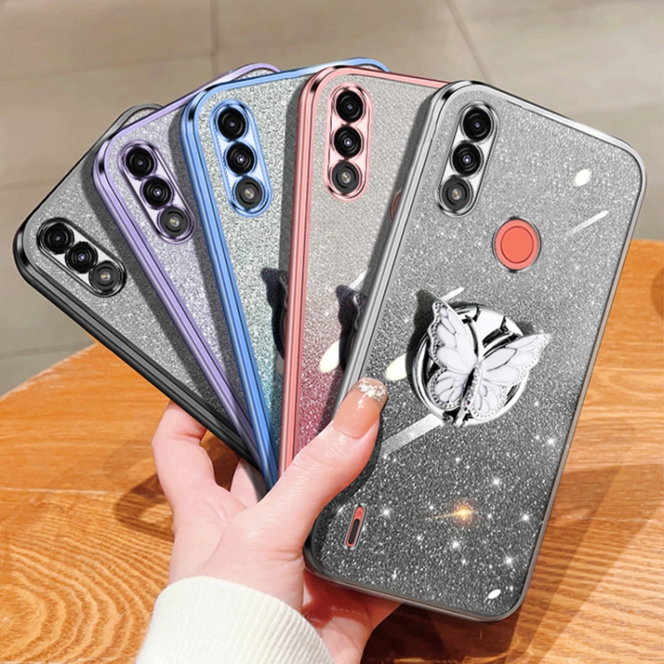 Funda TPU para Motorola Moto E7 con Soporte Mariposa y Brillo Degradado (Azul Sierra)