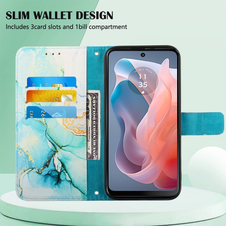 Funda de Cuero para Motorola Moto G Play 5G 2024 Pt003 con Tapa y Patrón de Mármol (Verde)