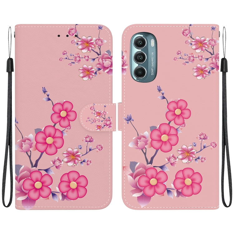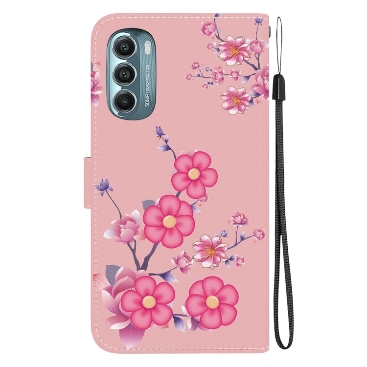 Funda de Cuero para Motorola Moto G Stylus 5G 2022 con Dibujo Coloreado y Textura de Cristal (Flores de Cerezo)