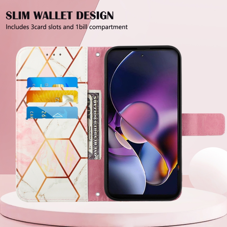 Funda de Cuero para Motorola Moto G Stylus 5G 2024 Pt003 con Tapa y Patrón Mármol (Rosa Blanco)