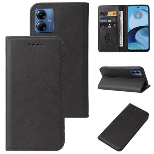 Funda de Cuero para Motorola Moto G14 con Cierre Magnético (Negro)