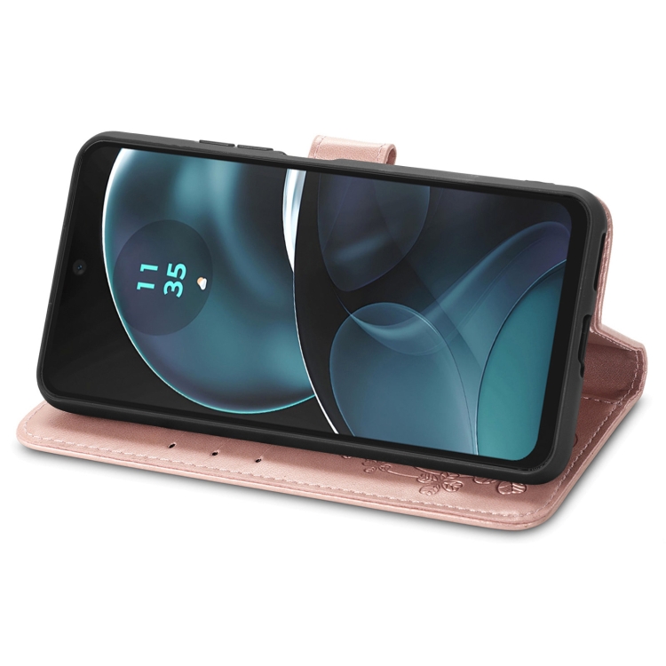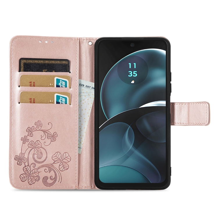 Funda de Teléfono Motorola Moto G14 Cuero Repujado con Cierre de Cuatro Hojas (Oro Rosa)