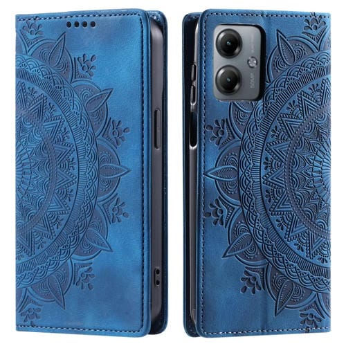 Funda de Cuero Magnética para Motorola Moto G14 Totem en Relieve (Azul)
