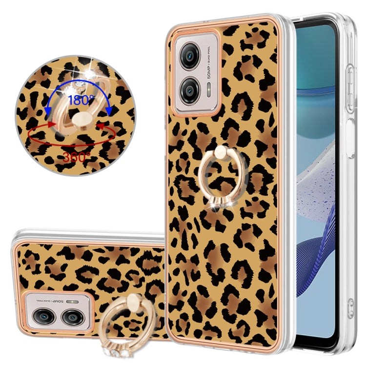 Funda para Motorola Moto G53 / G23 / G13 Imd Doble Cara Galvanizada con Soporte para Anillo (Leopardo)