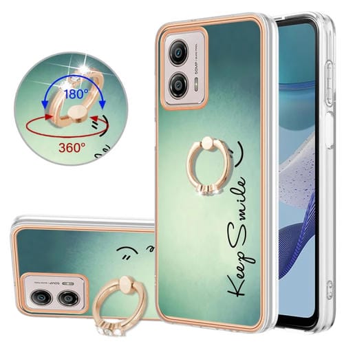 Caja de Teléfono Imd Doble Cara Galvanizada para Motorola Moto G53 / G23 / G13 con Soporte para Anillo (Sonrisa)