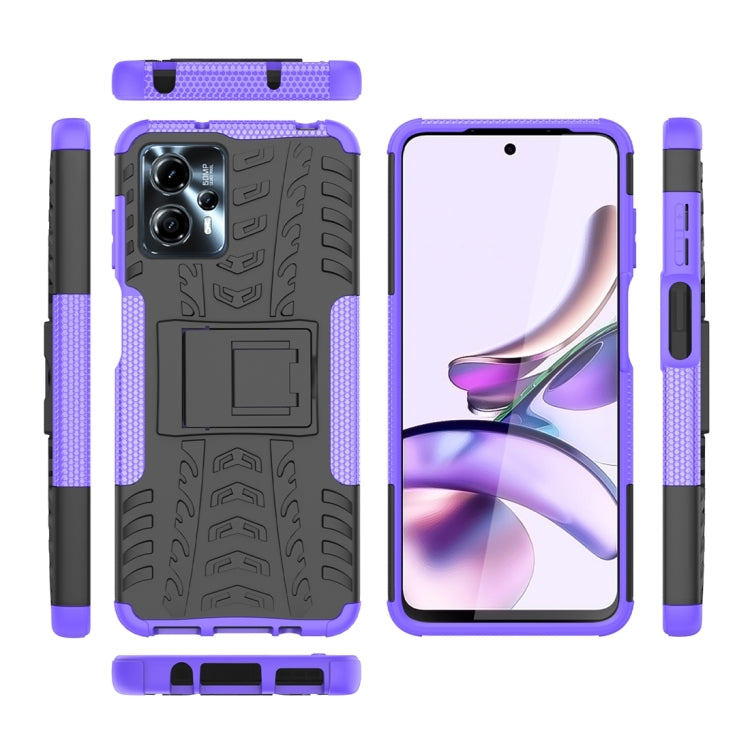 Funda para Motorola Moto G53 Tire Texture TPU + PC con Soporte (Púrpura)