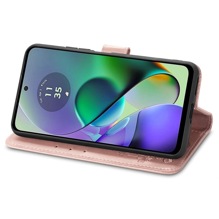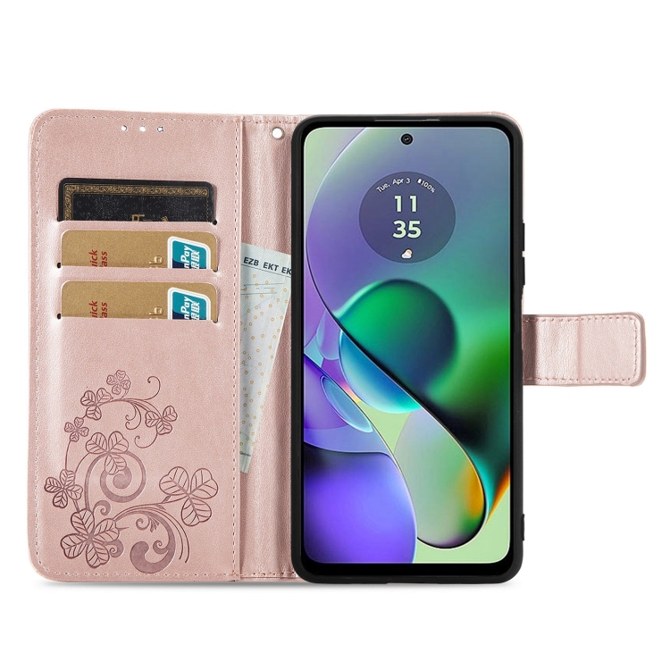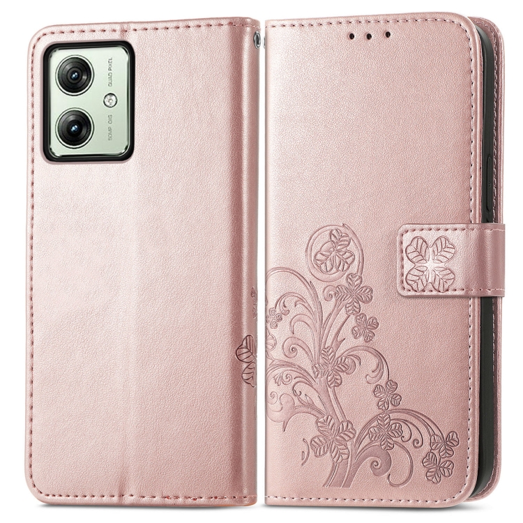 Funda para Motorola Moto G54 5G de Cuero Repujado con Cierre de Cuatro Hojas (Oro Rosa)