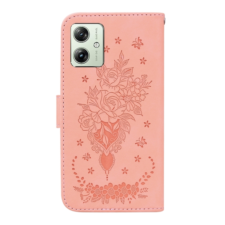Funda de Cuero para Motorola Moto G54 con Relieve de Mariposa y Rosa (Rosa)