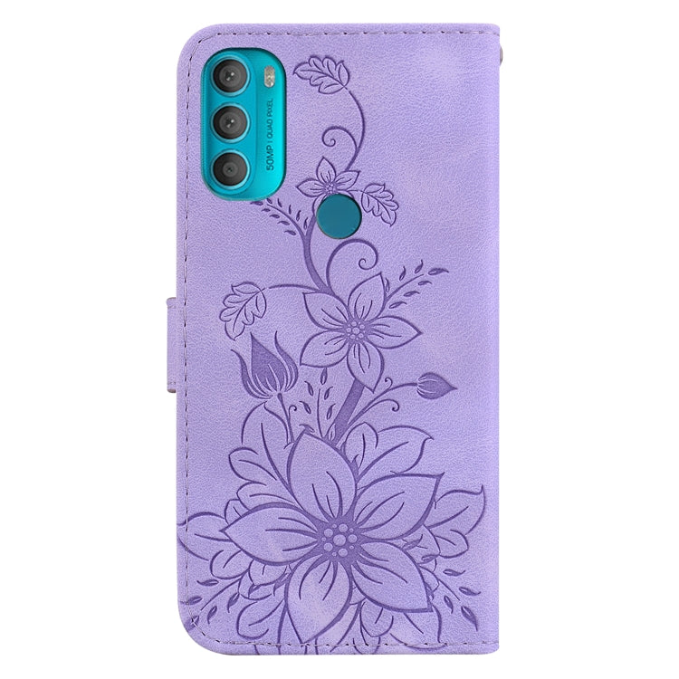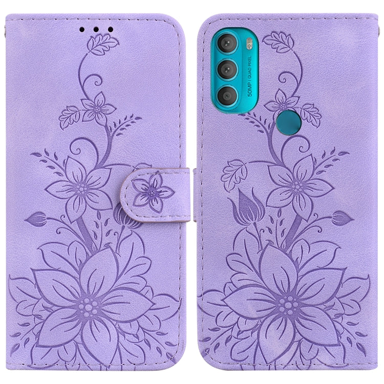 Funda de Cuero en Relieve para Motorola Moto G71 5G Lily (Púrpura)