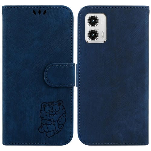 Funda para Motorola Moto G73 de Cuero con Relieve Little Tiger (Azul Oscuro)