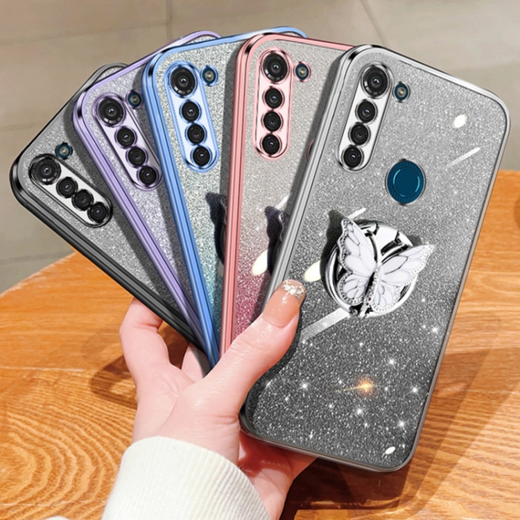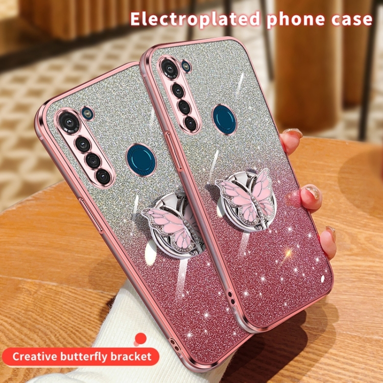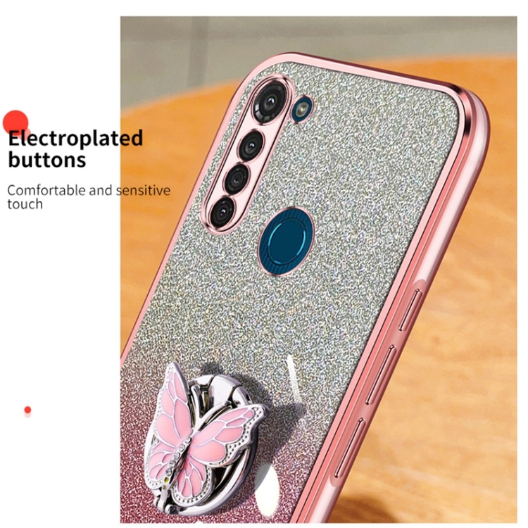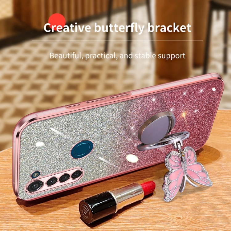 Funda TPU para Motorola Moto G8 con Soporte Mariposa y Brillo Degradado (Rosa)