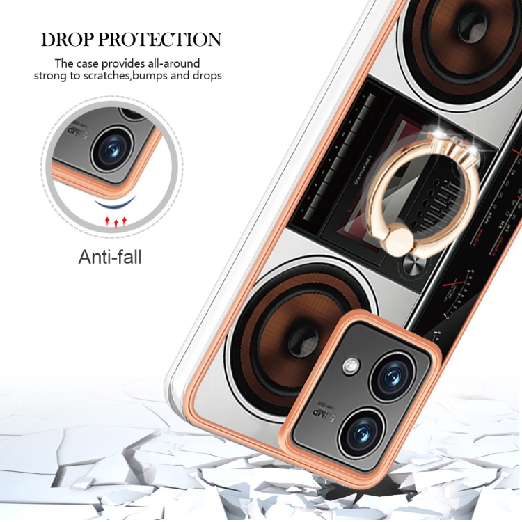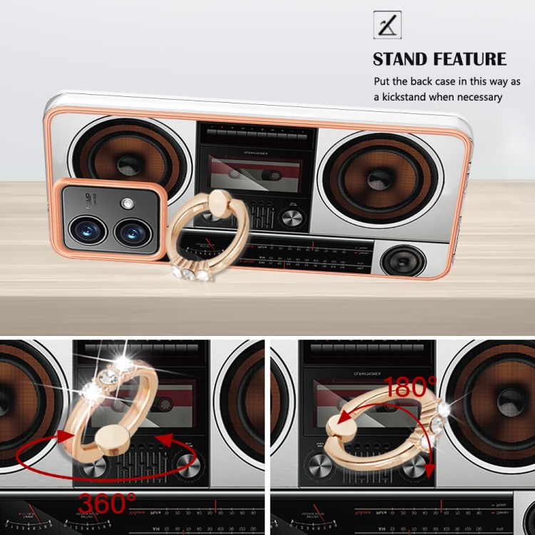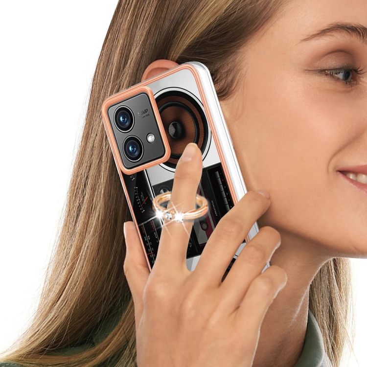 Estuche para Motorola Moto G84 IMD Doble Cara con Galvanoplastia y Soporte para Anillo (Radio Retro)