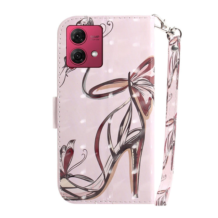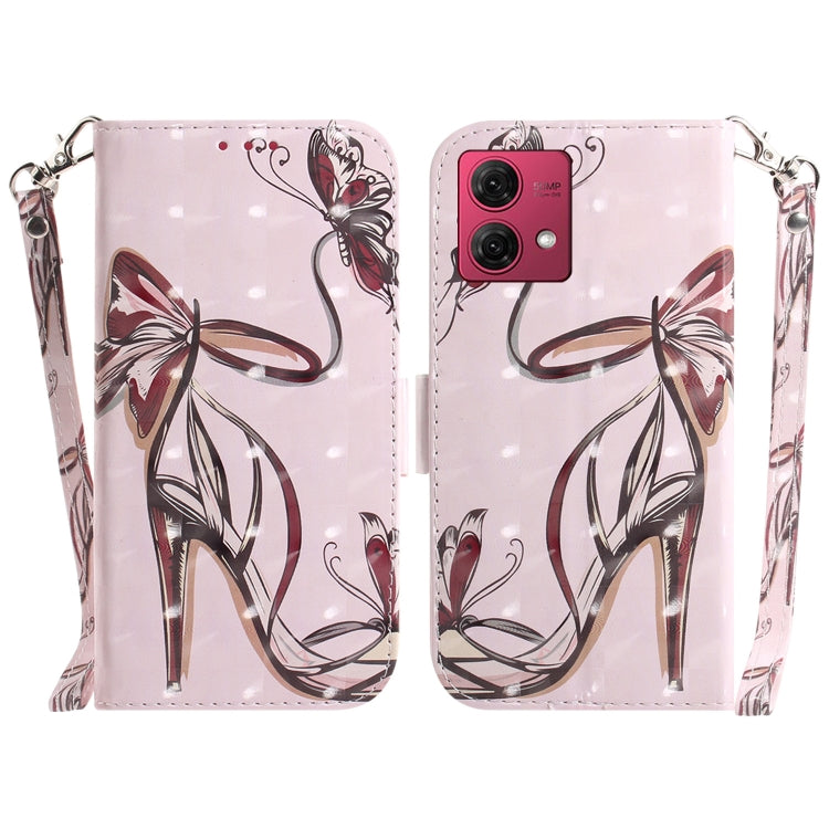 Funda de Cuero para Motorola Moto G84 con Tapa Horizontal y Diseño 3D (Mariposa de Tacón Alto)