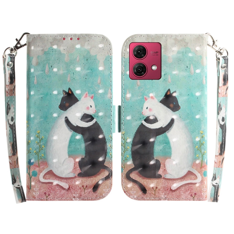 Funda de Cuero para Motorola Moto G84 con Tapa Horizontal y Diseño 3D (Gato Blanco Negro)
