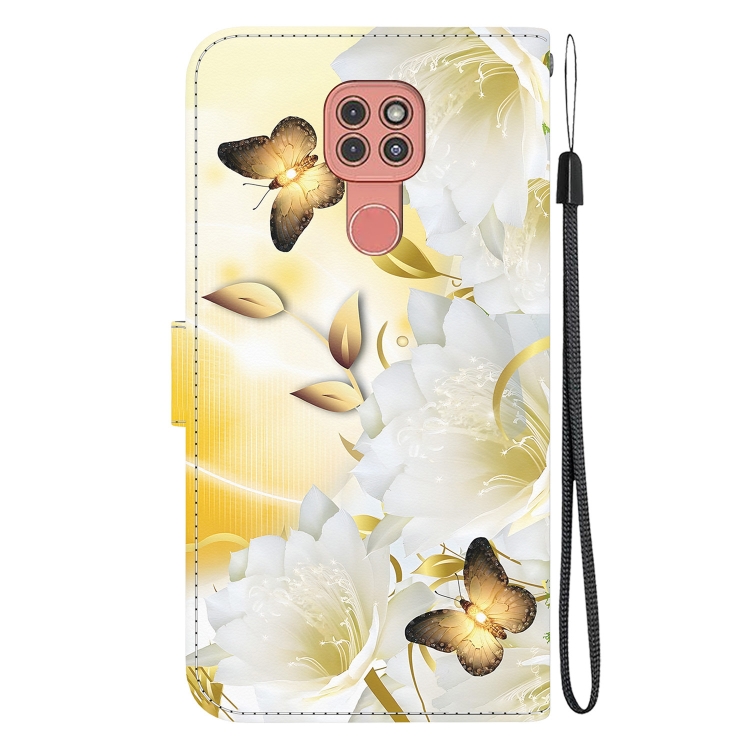 Funda de Cuero para Motorola Moto G9 Play / E7 Plus con Dibujo Epiphyllum Mariposa Dorada y Textura de Cristal