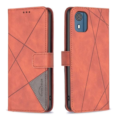 Funda de Cuero para Nokia C02 con Hebilla Magnética y Textura Rombo (Marrón)