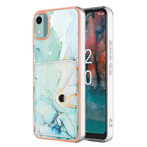 Estuche para Teléfono Nokia C12 con Ranura para Tarjeta y Patrón de Mármol (Verde)