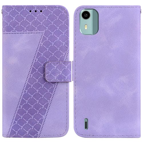 Funda de Cuero En Relieve en Forma de 7 para Nokia C12 (Púrpura)