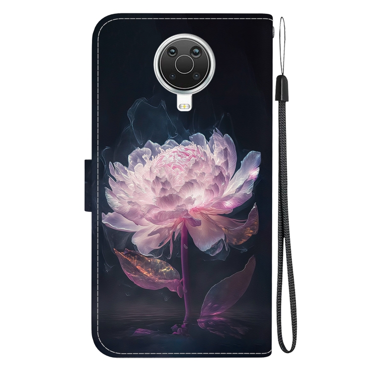 Funda para Nokia G10 y G20 de Cuero con Dibujo Coloreado y Textura de Cristal (Peonía Púrpura)