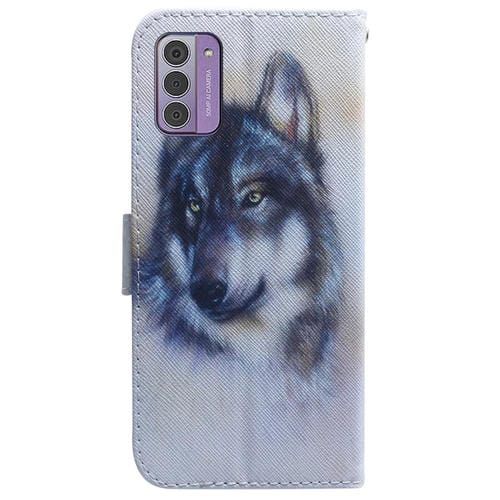 Funda de Cuero con Tapa para Nokia G42 Dibujo Coloreado (Lobo Blanco)