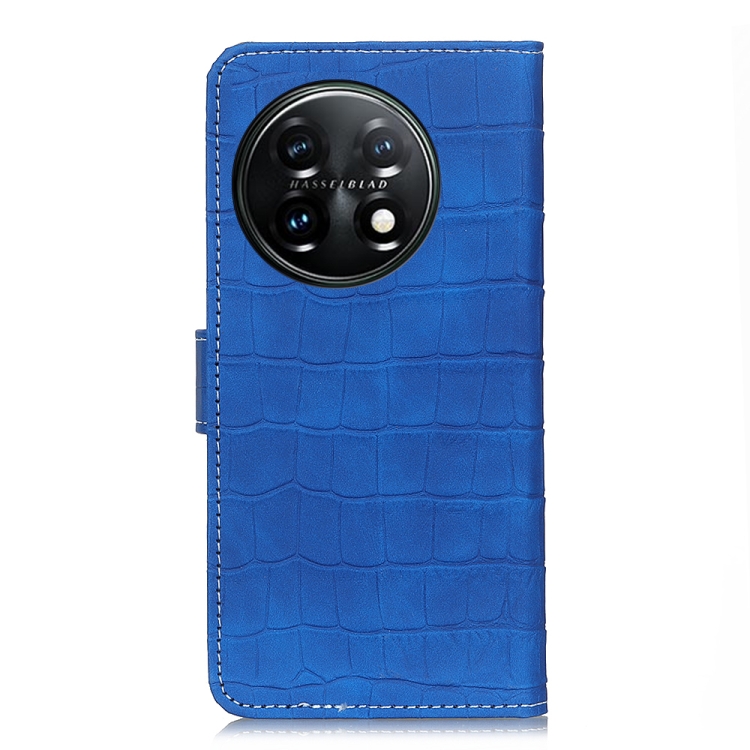 Funda de Cuero para OnePlus 11 5G con Textura de Cocodrilo Magnética (Azul)