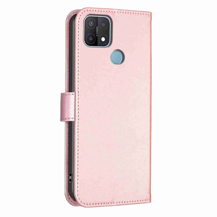 Para Oppo A15 Funda de Cuero con Relieve de Cuatro Hojas (Rosa)