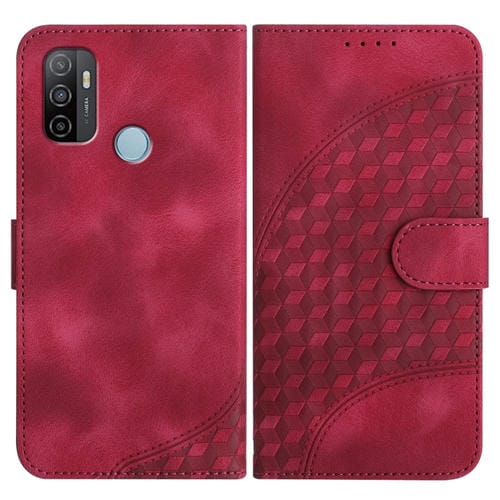 Para Oppo A53 4G / A32 4G / A53S 4G / A33 4G Yx0060 Funda de Cuero para Teléfono con Relieve y Cabeza de Elefante con Cordón (Rojo Rosa)