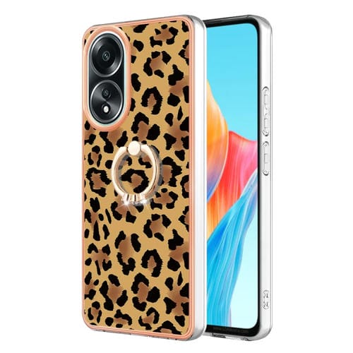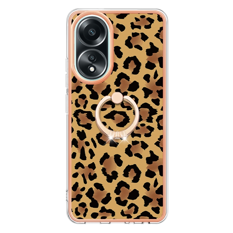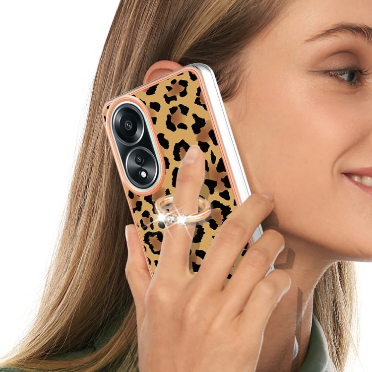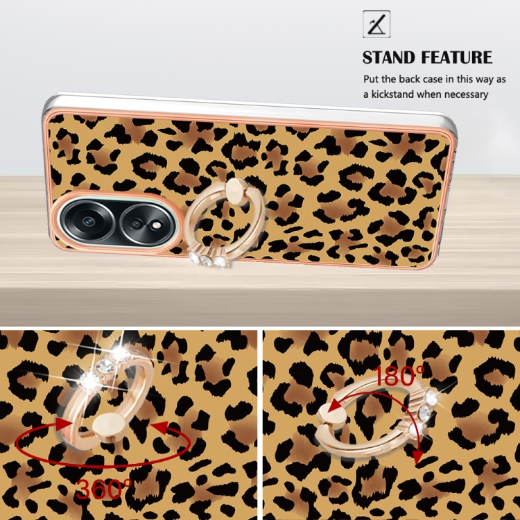 Para Oppo A58 4G Estuche para Teléfono Imd de Doble Cara con Galvanoplastia y Soporte para Anillo (Estampado de Leopardo)