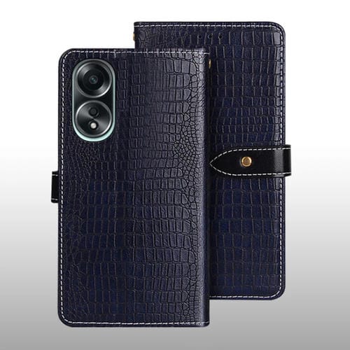 Para Oppo A58 4G Funda para Teléfono de Cuero con Textura de Cocodrilo Idewei Extranjero (Azul Oscuro)