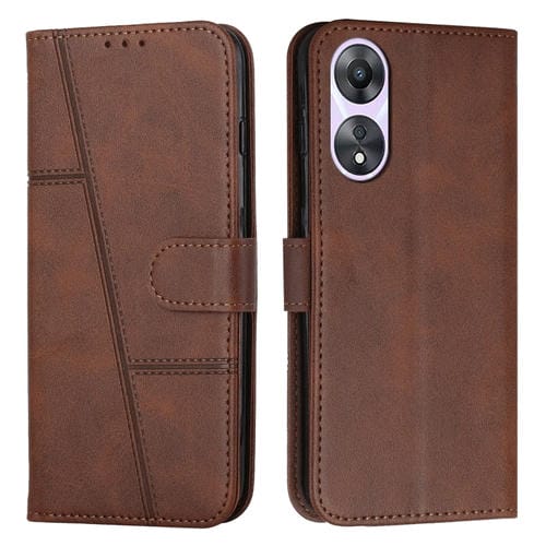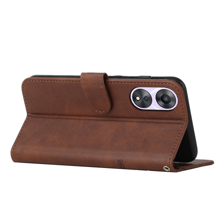 Para Oppo A58 / A78 Funda para Teléfono de Cuero con Hebilla y Textura de Becerro con Costura (Marrón)