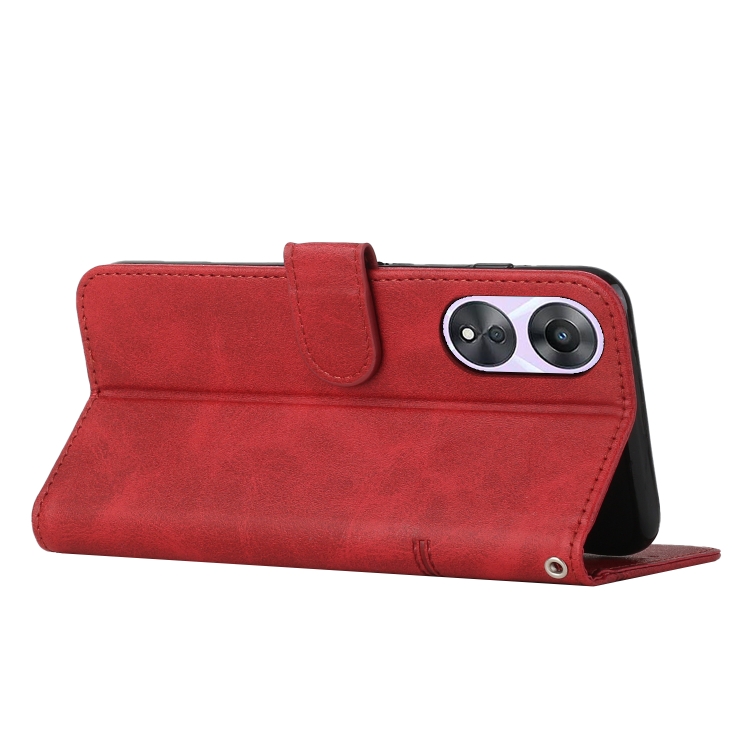 Para Oppo A58 / A78 Funda para Teléfono de Cuero con Hebilla y Textura de Becerro con Costura (Rojo)