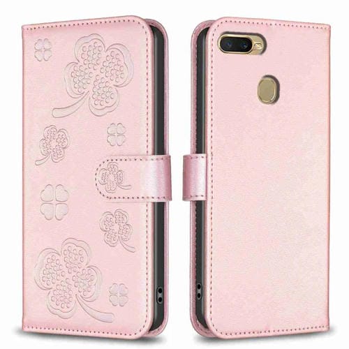 Para Oppo A7 Funda de Cuero con Relieve de Cuatro Hojas (Rosa)