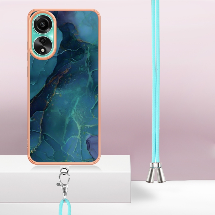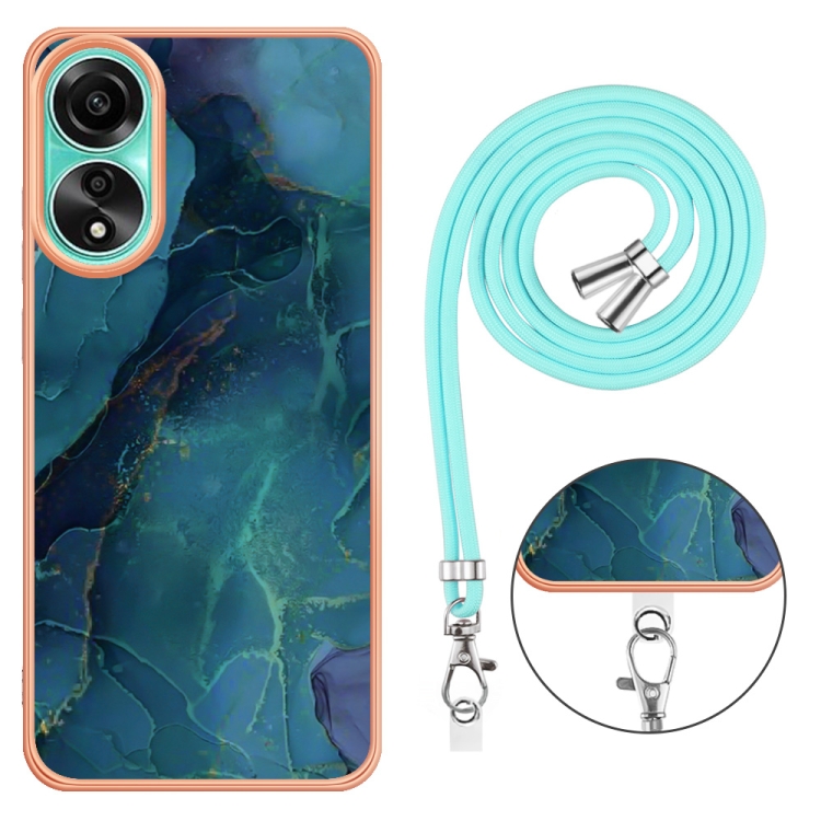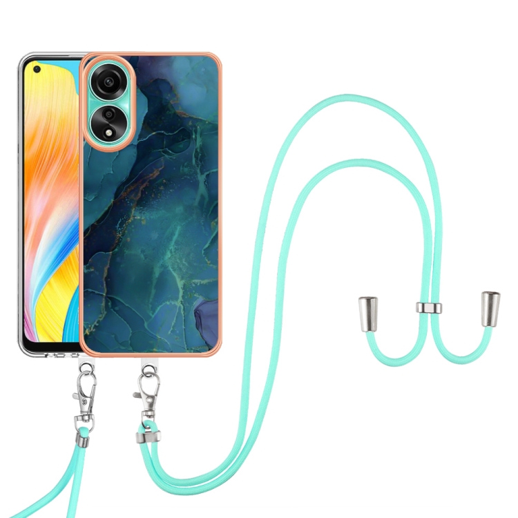 Para Oppo A78 4G Caja de Teléfono Imd de Doble Cara de Mármol Galvanizado con Cordón (Verde 017)
