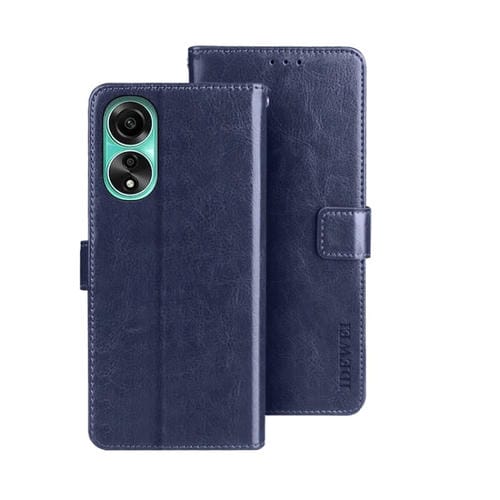 Para Oppo A78 4G Funda para Teléfono de Cuero con Textura Crazy Horse de Idewei Extranjero con Soporte (Azul)