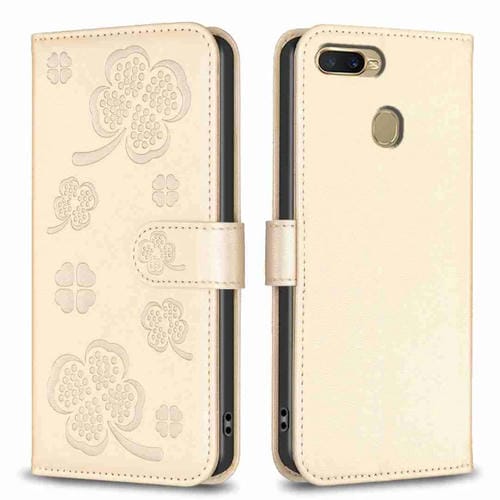 Para Oppo A92 / A72 / A52 Funda para Teléfono de Cuero con Relieve de Cuatro Hojas (Dorado)