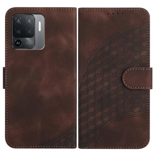 Para Oppo A94 4G/F19 Pro 4G/Reno5 F 4G/Reno5 Lite Yx0060 Funda de Cuero para Teléfono con Relieve y Cabeza de Elefante con Cordón (Café)