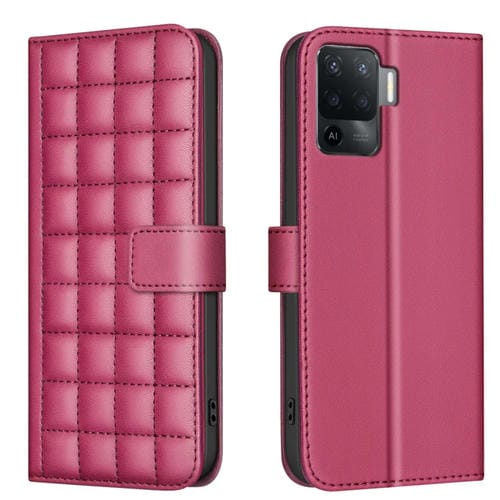 Para Oppo A94 4G / Reno5 F / F19 Pro Funda de Cuero con Textura Cuadrada (Rojo)