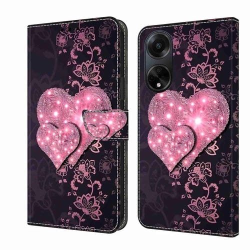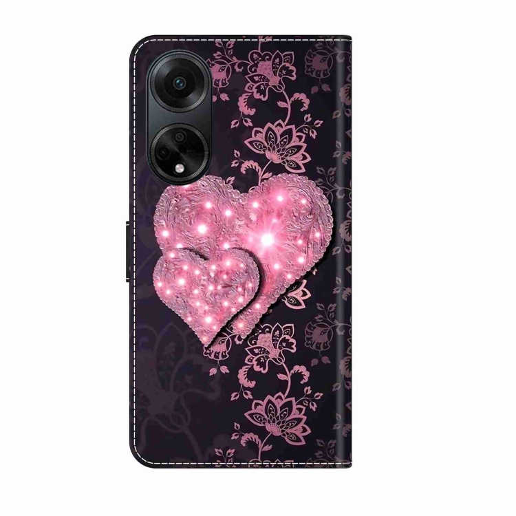 Para Oppo A98 5G Crystal 3D Funda Protectora de Cuero para Teléfono a Prueba de Golpes (Lace Love)