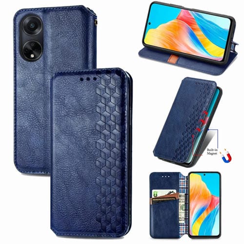 Para Oppo A98 Cubic Grid Funda de Teléfono de Cuero Magnético Prensado (Azul)