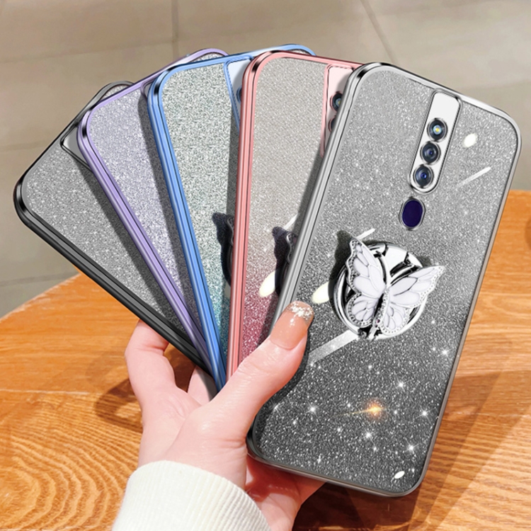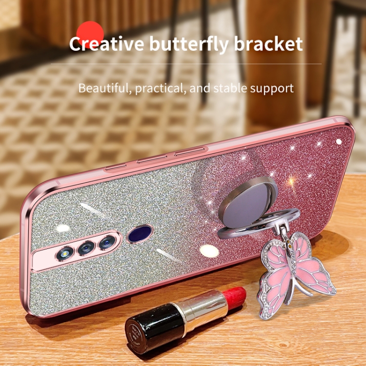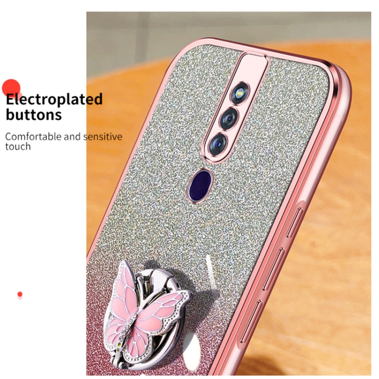 Para Oppo F11 Pro Funda para Teléfono de TPU con Soporte de Mariposa con Brillo Degradado Plateado (Púrpura)