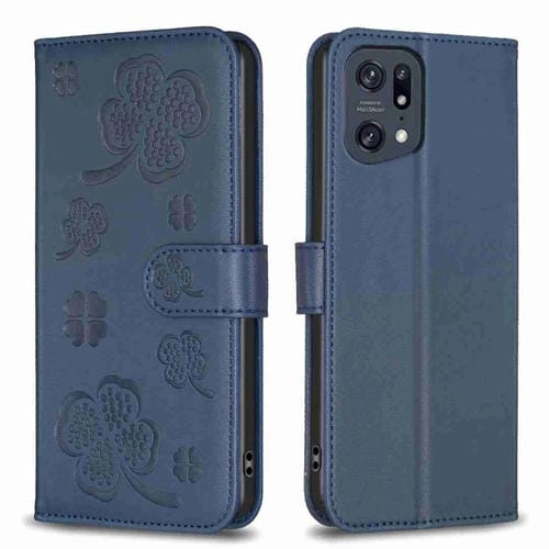 Para Oppo Find X5 Pro Funda de Cuero con Relieve de Cuatro Hojas para Teléfono (Azul)