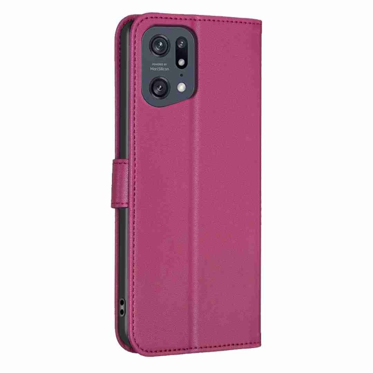 Para Oppo Find X5 Pro Funda de Cuero con Relieve de Cuatro Hojas para Teléfono (Rojo Rosa)