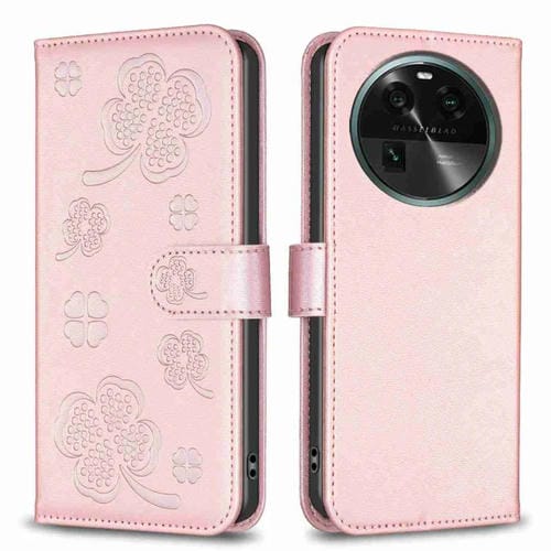 Para Oppo Find X6 Funda de Cuero con Relieve de Cuatro Hojas para Teléfono (Rosa)