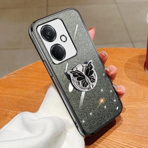 Para Oppo K11 Funda para Teléfono de TPU con Soporte de Mariposa con Brillo Degradado Plateado (Negro)