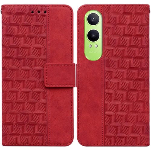 Para Oppo K12X Funda de Cuero con Relieve Geométrico (Rojo)